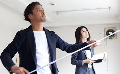 Trong trường hợp quyết định đổi mới hoặc cải tạo các địa điểm mới, người phụ trách sẽ trực tiếp đến thăm công trình và xác nhận kích thước của người thuê và tình hình thực tế, vv