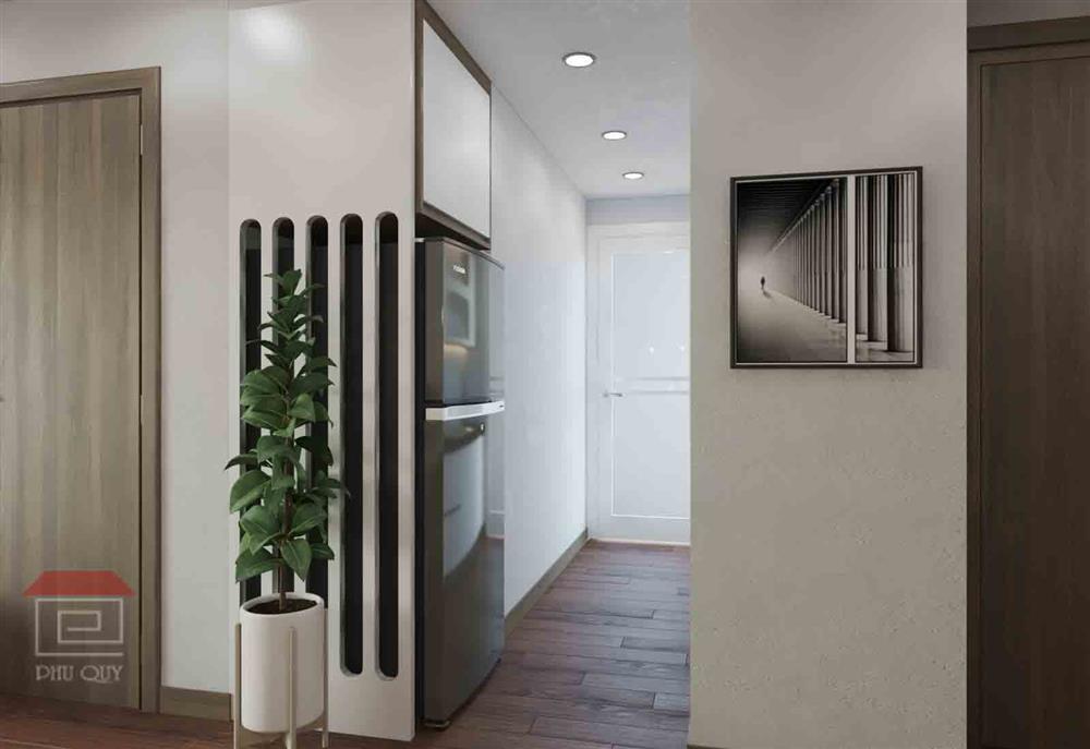 Một góc nhỏ nhưng rất quan trọng trong căn hộ. Đó là khu vực để giày dép ngay cửa vào. Giúp không gian luôn gọn gàng, tiện lợi. Đây là một điểm cộng trong thiết kế không gian sinh hoạt. Mang đến sự ngăn nắp, dễ dàng sử dụng cho các thành viên.