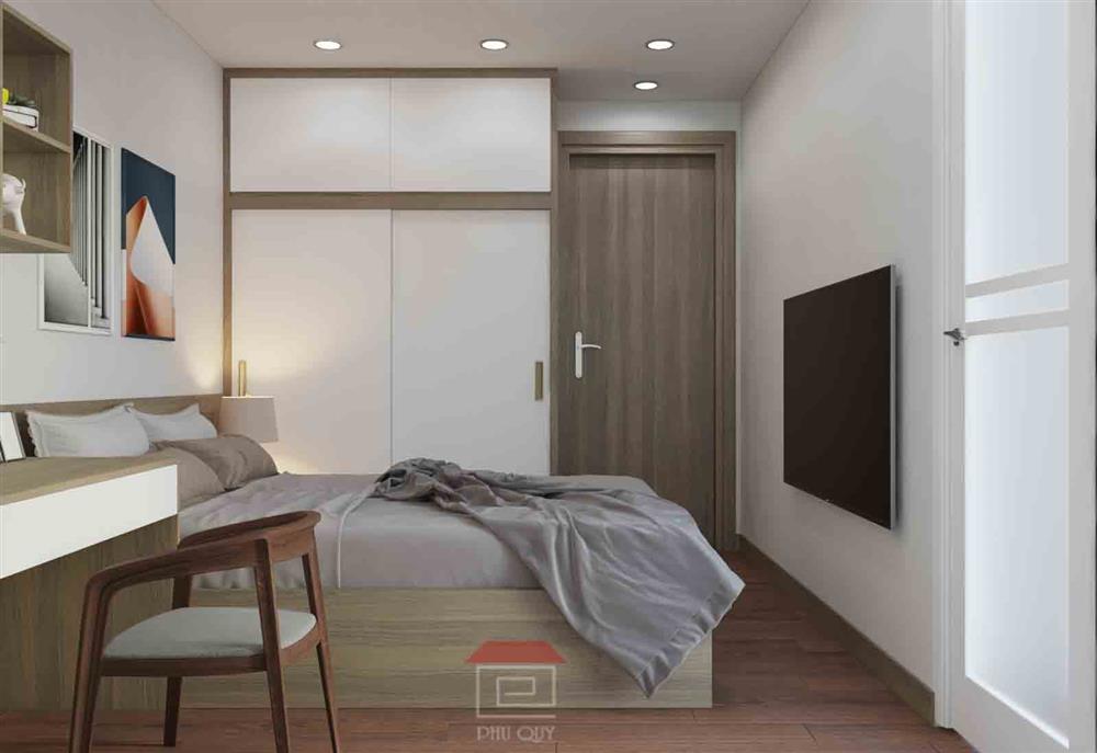 Phòng ngủ nhỏ không kém phần ấm cúng và tiện nghi. Tông màu nhẹ nhàng, kết hợp với nội thất thông minh. Tạo ra không gian sống tối ưu. Phù hợp với nhu cầu sử dụng của các thành viên trong gia đình.