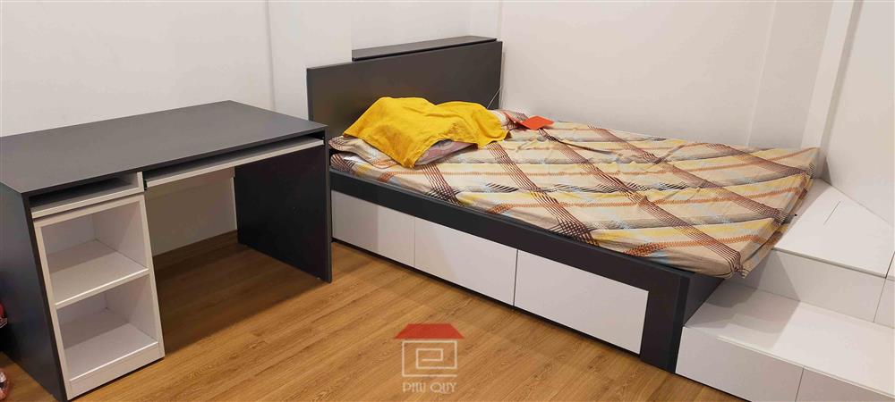 Chiếc giường ngủ được lắp đặt tỉ mỉ, đảm bảo sự thoải mái và thẩm mỹ. Chất liệu cao cấp và gam màu trung tính giúp không gian phòng ngủ thêm phần ấm cúng.