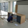 - Lắp nội thất phòng giám đốc, bàn nhân viên, quầy lễ tân và logo công ty.