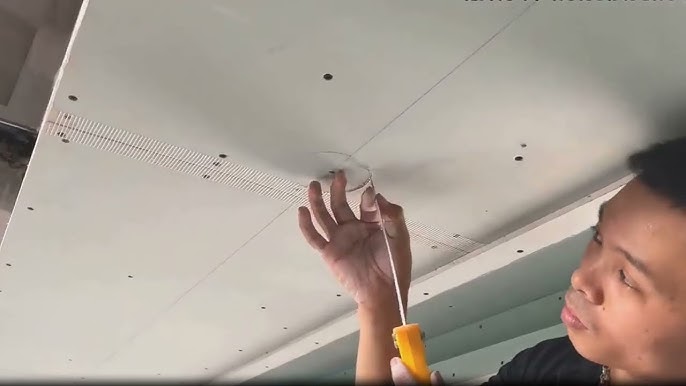 Đánh dấu vị trí các thanh ty treo trên trần nhà. Sử dụng máy laser hoặc thước dây để đánh dấu vị trí các thanh ty treo trên trần nhà. Khoảng cách giữa các thanh ty treo thường là 60-80 cm.